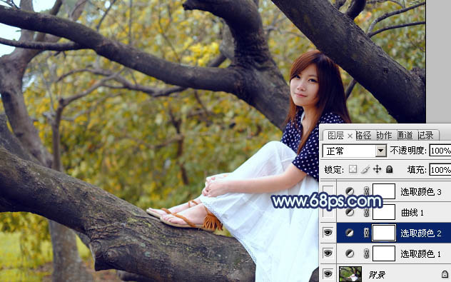 Photoshop给坐树枝上的美女加上小清新的蓝黄色(3)