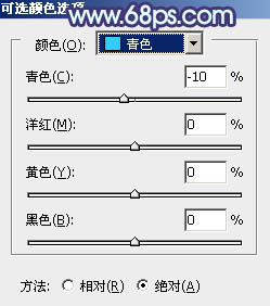 4、创建可选颜色调整图层,对青、蓝、洋红、白进行调整,参数设置如图6 - 9,效果如图10。这一步微调图片主色,并给高光部分增加淡青色。
