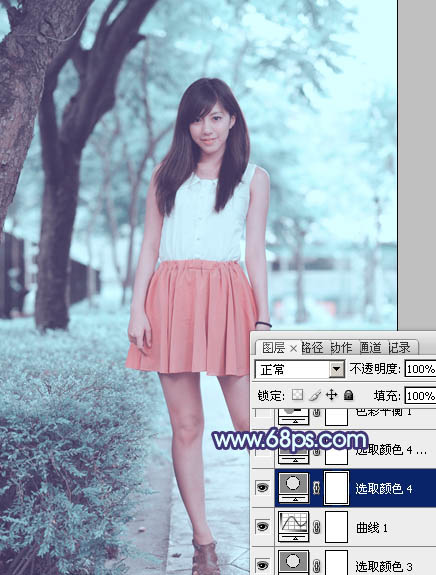 Photoshop给绿树边的美女加上甜美的淡调青蓝色(3)