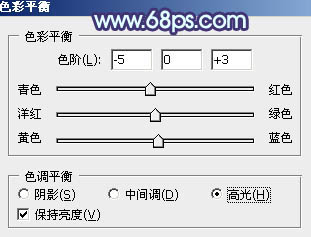 6、创建色彩平衡调整图层,对阴影,高光进行调整,参数设置如图12,13,效果如图14。这一步加强图片暗部及高光部分的颜色。