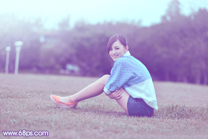 素材图片有点偏暗,人物部分不够突出。处理的时候可以考虑把暗部颜色转为蓝色或蓝紫色,再把整体稍微调亮,高光部分增加一点淡蓝色即可。