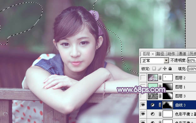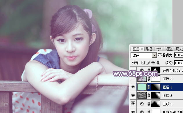 Photoshop给倚靠扶栏的美女加上甜美的紫绿色(6)