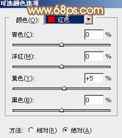 1、打开素材图片,创建可选颜色调整图层,对红、黄、绿、中性、黑进行调整,参数设置如图1 - 5,效果如图6。这一步给图片增加暖色。