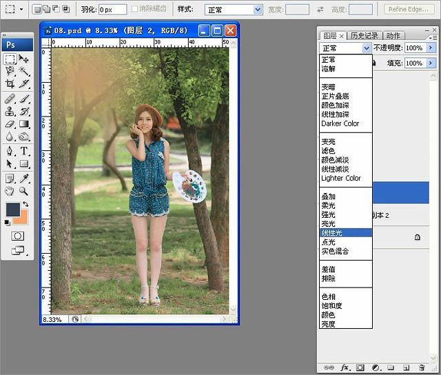 Photoshop给树林写真人像加上甜美的黄绿色