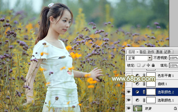 Photoshop给野花中的美女加上小清新的粉黄色(3)