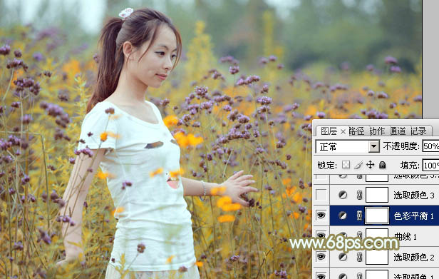 Photoshop给野花中的美女加上小清新的粉黄色(4)