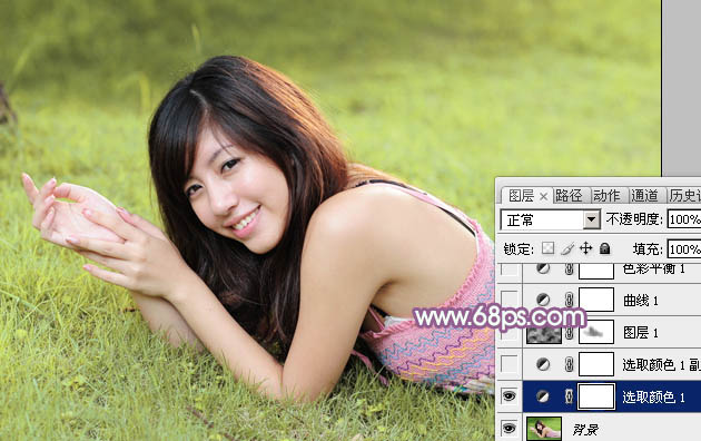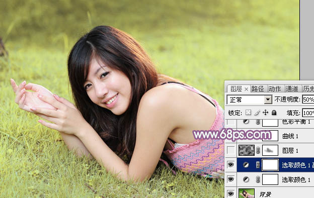 Photoshop给绿草上的美女加上唯美的黄紫色(2)