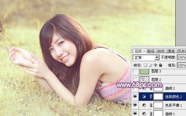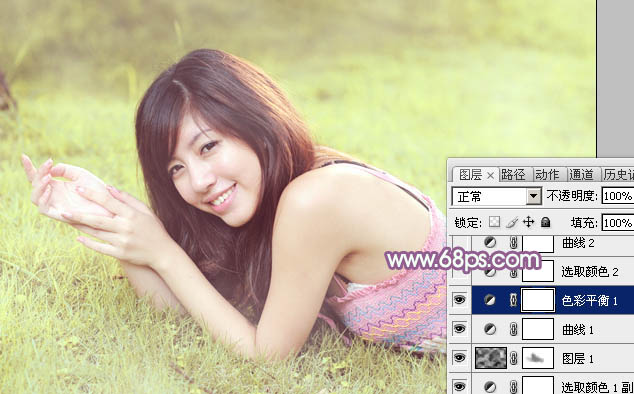 Photoshop给绿草上的美女加上唯美的黄紫色(4)