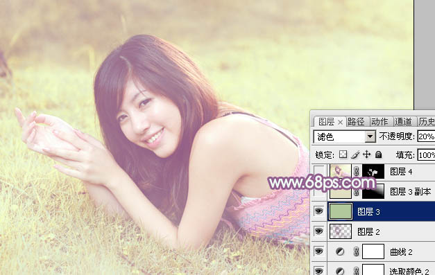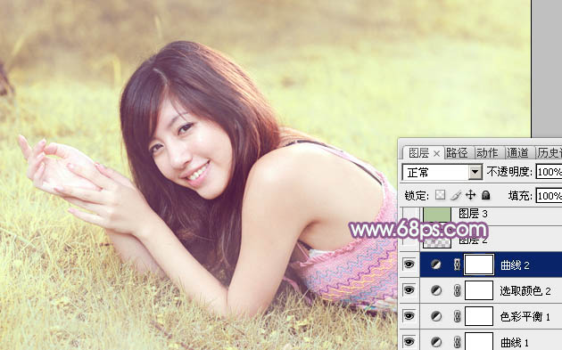 Photoshop给绿草上的美女加上唯美的黄紫色(5)