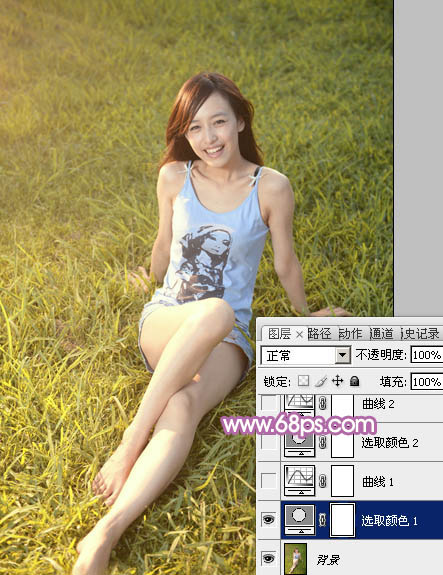 Photoshop给草地上的美女加上柔美的蓝黄色(2)