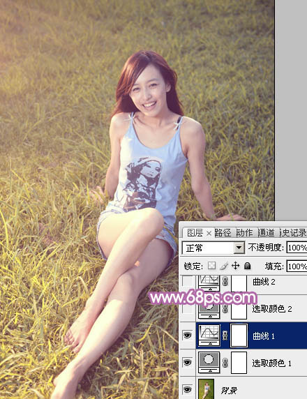 Photoshop给草地上的美女加上柔美的蓝黄色(3)