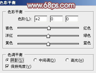 9、创建色彩平衡调整图层,对阴影,高光进行调整,参数设置如图23,24,效果如图25。这一步加强图片暗部及高光部分的颜色。