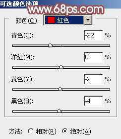 18、创建可选颜色调整图层,对红色进行调整,参数设置如图42,确定后用黑色画笔把人物部分擦出来,效果如图43。这一步把背景部分的红色调淡。
