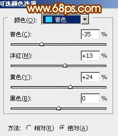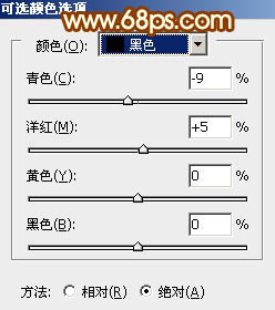 1、打开素材图片,创建可选颜色调整图层,对黄、绿、青、黑进行调整,参数设置如图1 - 4,效果如图5。这一步给背景增加橙黄色。