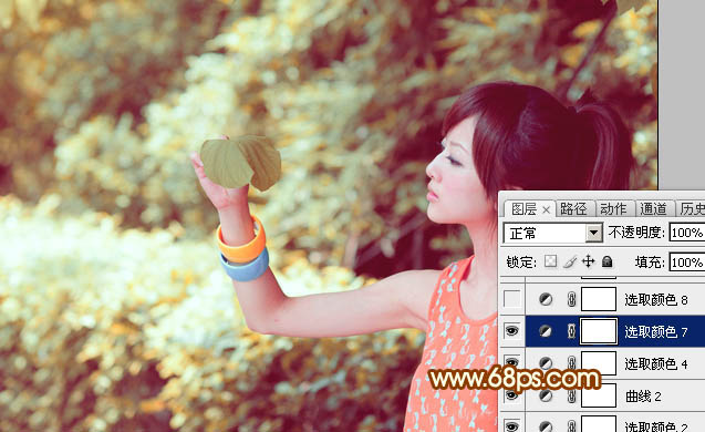 Photoshop给绿树边的美女加上唯美的阳光暖色(4)