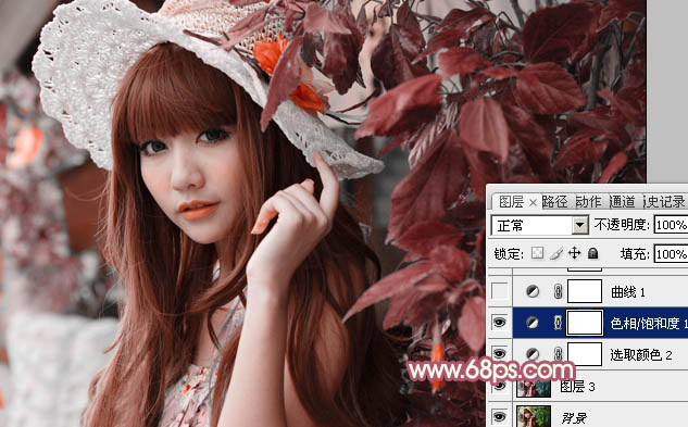 Photoshop给树叶下的美女加上甜美的橙色(2)