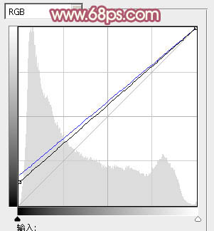 4、创建曲线调整图层,对RGB,蓝通道进行调整,参数设置如图6,效果如图7。这一步增加图片暗部亮度,并增加蓝色。