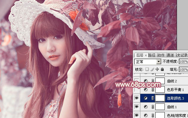 Photoshop给树叶下的美女加上甜美的橙色(3)