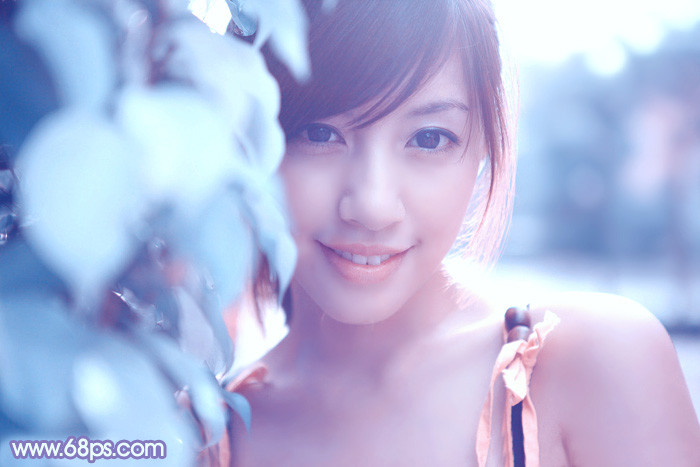 蓝色图片用通道替换调色是非常快的。替换后就可以得到青红色图片,把青色转为蓝色,再把蓝色纯度提高,后期稍微美化一下人物部分即可。
