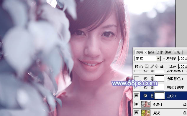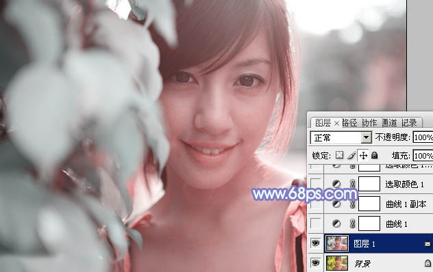 利用PS通道替换给树叶边的美女加上梦幻的淡蓝色