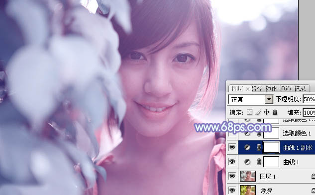 3、按Ctrl + J 把当前曲线调整图层复制一层,不透明度改为:50%,效果如下图。