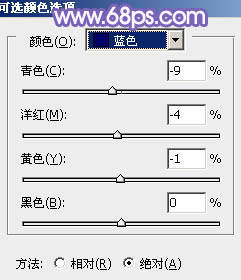 16、创建可选颜色调整图层,对蓝,白进行调整,参数设置如图27,28,确定后把图层不透明度改为:60%,效果如图29。这一步主要给图片高光部分增加淡蓝色。
