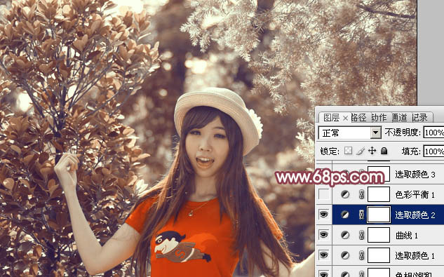 Photoshop给树林人物图片加上鲜丽的橙褐色(4)