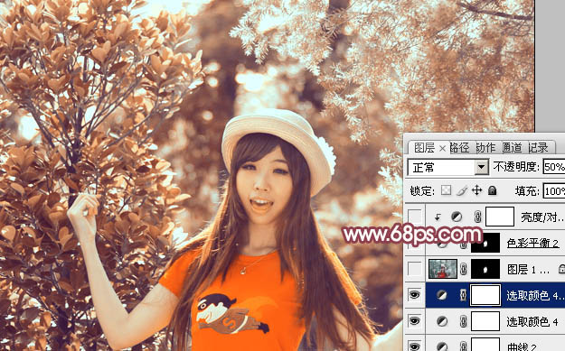 10、按Ctrl + J 把当前可选颜色调整图层复制一层,不透明度改为:50%,效果如下图。
