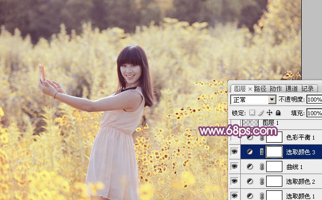 Photoshop给野花中的美女加上纯美的淡黄色(5)