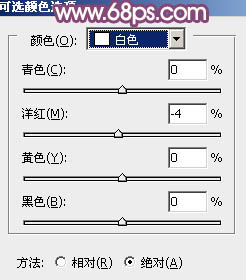7、创建可选颜色调整图层,对红、黄、白进行调整,参数设置如图23 - 25,效果如图26。这一步微调图片暖色。