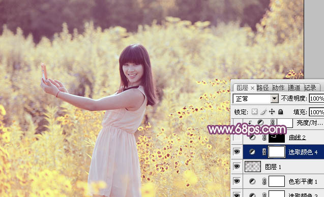 Photoshop给野花中的美女加上纯美的淡黄色(6)