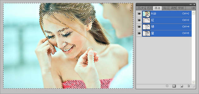 9、Ctrl+ait+~ 或者选择工具点击通道RGB图层载入选区。