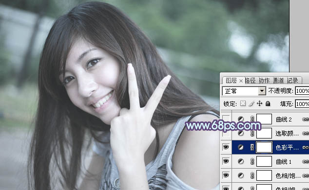 Photoshop给外景美女加上柔美的中性青蓝色(3)