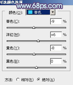 5、创建可选颜色调整图层,对红、青、白、黑进行调整,参数设置如图9 - 12,效果如图13。这一步主要给图片高光及暗部增加蓝色。