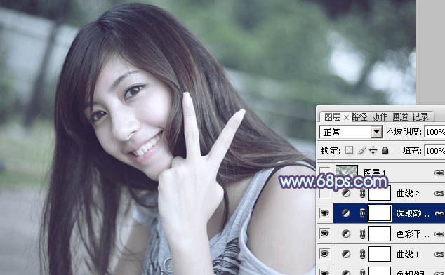 Photoshop给外景美女加上柔美的中性青蓝色