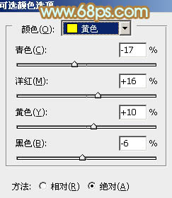 5、创建可选颜色调整图层,对红、黄、绿、白、黑进行调整,参数设置如图12 - 16,效果如图17。这一步适当增加图片中黄色亮度,同时给高光部分增加淡青色。