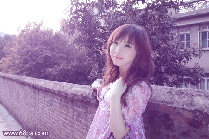 素材图片以暗色为主,比较适合调成暗紫色。过程:先用调色工具把图片的主色转为褐色,然后用曲线等调色工具给图片暗部增加蓝紫色,高光部分增加淡紫色,后期再美化一下人物部分即可。