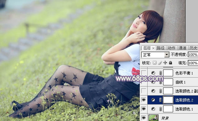Photoshop给倚靠树桩的美女加上柔美的淡调蓝黄色(3)