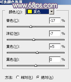 8、创建可选颜色调整图层,对黄、蓝、白进行调整,参数设置如图32 - 34,效果如图35。这一步加强图片中的暖色。