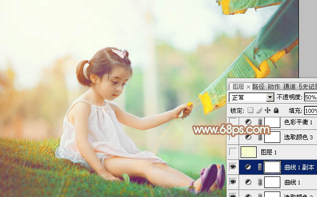 5、按Ctrl + J 把当前曲线调整图层复制一层,不透明度改为:50%,效果如下图。