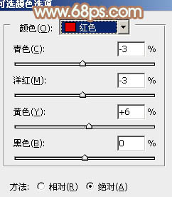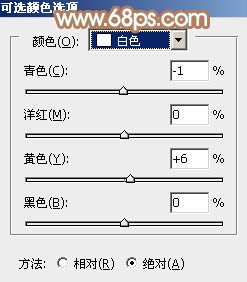 7、创建可选颜色调整图层,对红、黄、白进行调整,参数设置如图16 - 18,确定后把图层不透明度改为:70%,效果如图19。这一步给图片增加暖色。