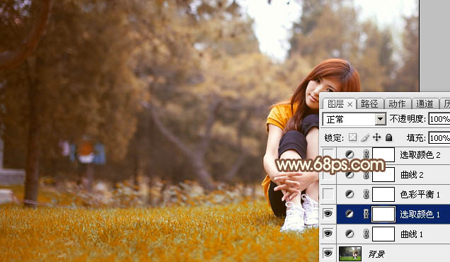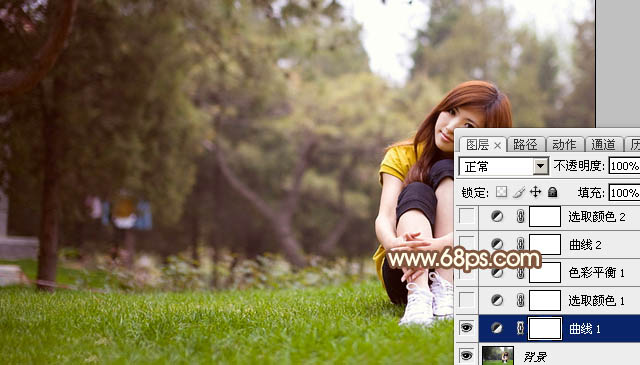 Photoshop给草地上的美女加上漂亮的秋季阳光色(2)