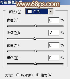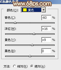 2、创建可选颜色调整图层,对红、黄、绿、白、中性、黑进行调整,参数设置如图3 - 8,效果如图9。这一步主要把草地颜色转为橙黄色。