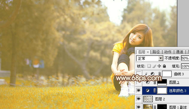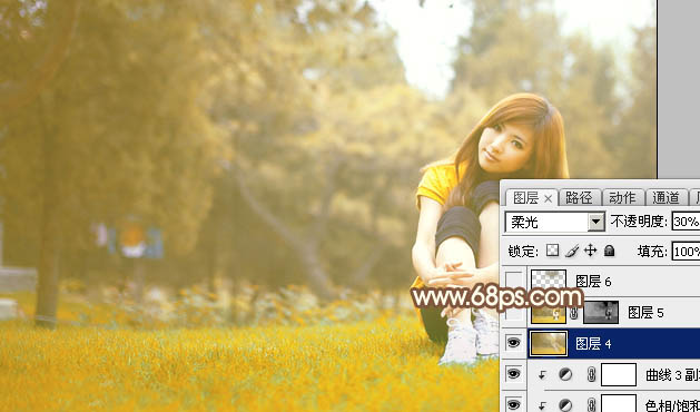 Photoshop给草地上的美女加上漂亮的秋季阳光色(6)