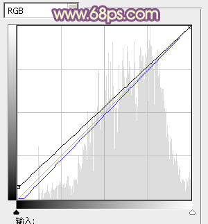 7、创建曲线调整图层,对RGB,蓝色通道进行调整,参数及效果如下图。这一步主要增加图片暗部亮度。