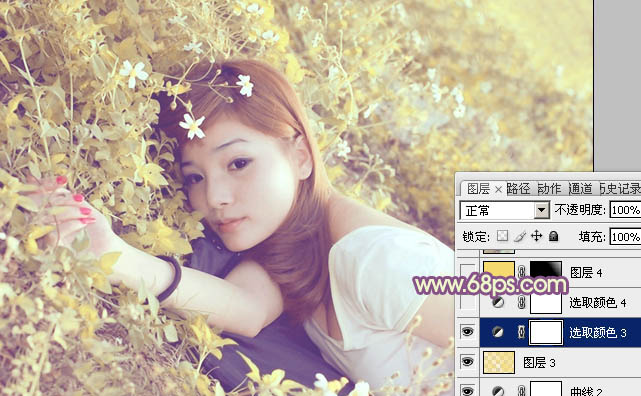 Photoshop给草地美女图片加上柔美的早秋暖色(6)