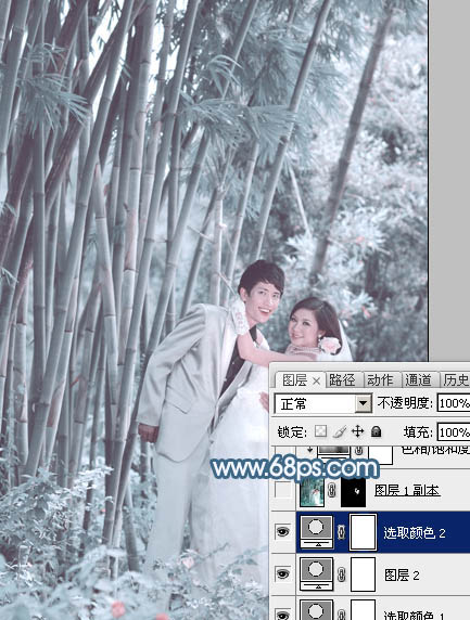 Photoshop给竹林婚片加上梦幻的淡调青蓝色(4)
