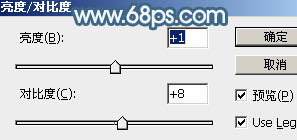 10、创建亮度/对比度调整图层,适当增加图片对比度,参数设置如图23,确定后同样按Ctrl + Alt + G 创建剪贴蒙版,效果如图24。这三步调整人物肤色。
