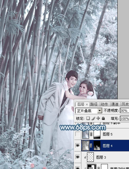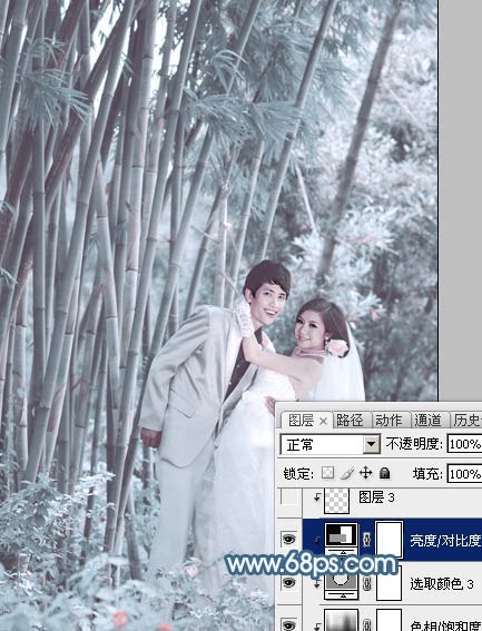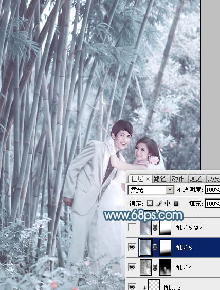 Photoshop给竹林婚片加上梦幻的淡调青蓝色(6)