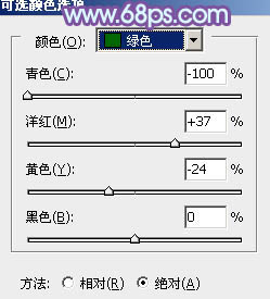 1、打开素材图片,创建可选颜色调整图层,对红、黄、绿、白、黑进行调整,参数设置如图1 - 5,效果如图6。这一步主要把树木部分的颜色转为橙黄色。